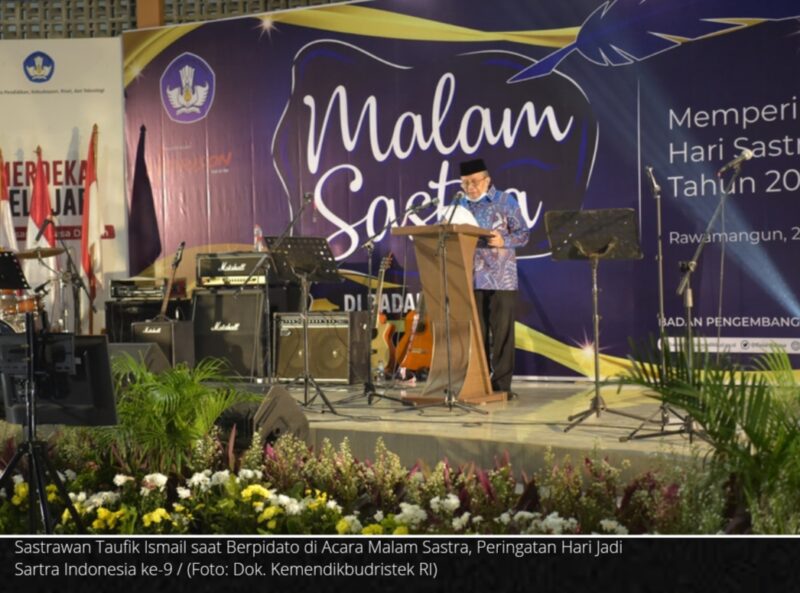SALOIPOST.Id – Pada peringatan Hari Sastra Indonesia ke-9, Badan Pengembangan Pembinaan Bahasa (Badan Bahasa), Kementerian Pendidikan, Kebudayaan, Riset, dan Teknologi (Kemendikbudristek), menyelenggarakan “Malam Sastra di Badan Bahasa” tahun 2022 secara hibrida di Kantor Badan Bahasa, Rawamangun, Jakarta, Sabtu (2/7).